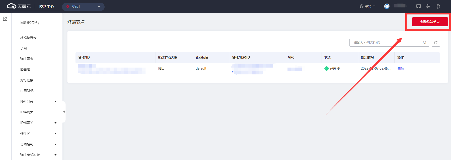 1、登录VPC终端节点控制台,点击右上角的“创建终端节点”按钮。