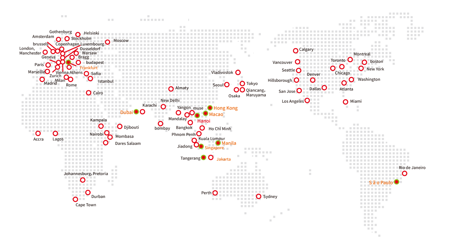 | Hong Kong SAR | Macau SAR| Singapore| Jakarta| Hanoi | Manila | Frankfurt | Dubai | Sao Paulo.
