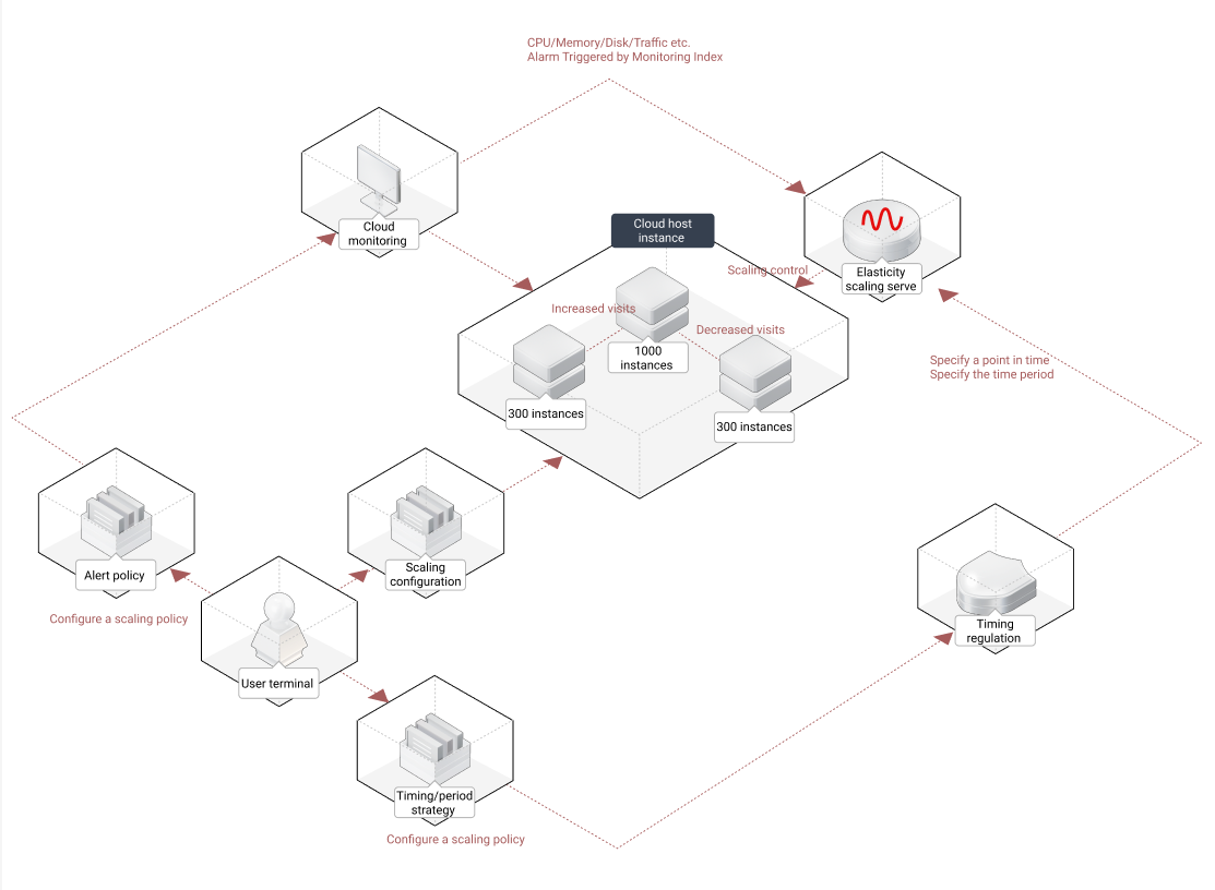 - There are obvious peaks and valleys in a specific business period and scenario. If the peak value is taken as the standard, it will bring huge cost waste to be equipped with a large number of ECSs in advance.