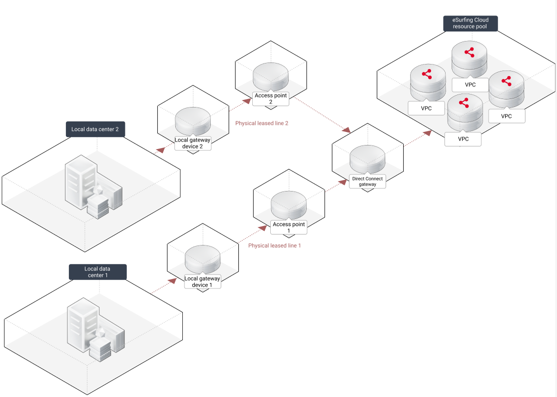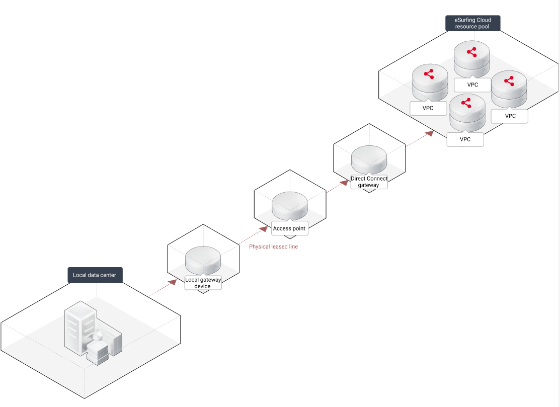 - When the business scale grows explosively and the original DC cannot meet business requirements, you can expand your business on the cloud by connect your local DCs with cloud-based resources.