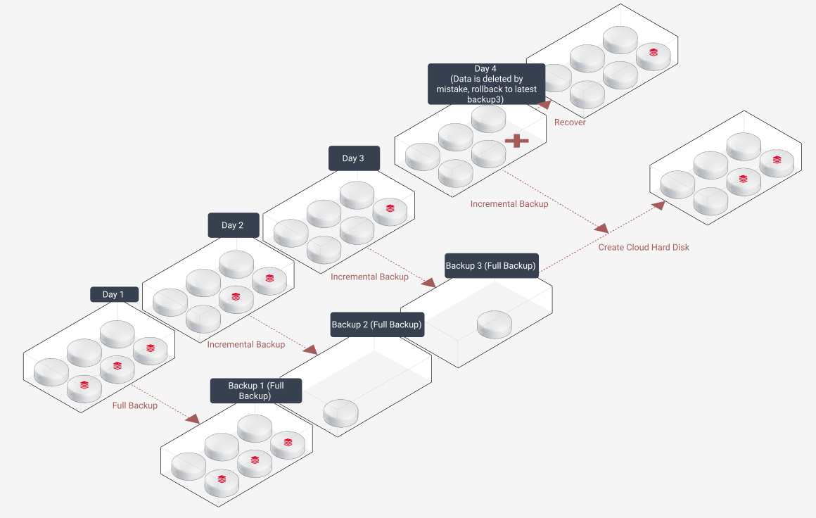 You can back up your data disk as per use to reduce backup costs. Full backup is used for the first time, followed by incremental backup, so as to save repository space and reduce backup space.