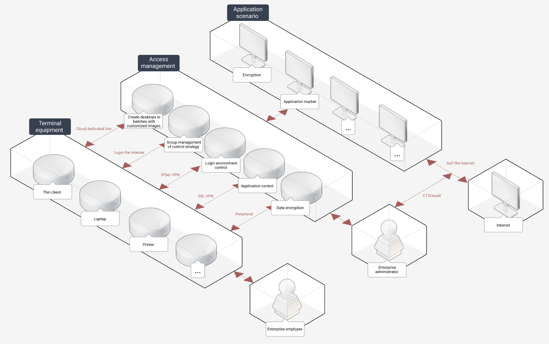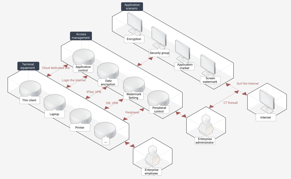 - 3. Strengthen the deterrence in advance, in-process control and post-audit to prevent information leakage by means of FileCrypto, screen watermarking, login authentication and login audit;