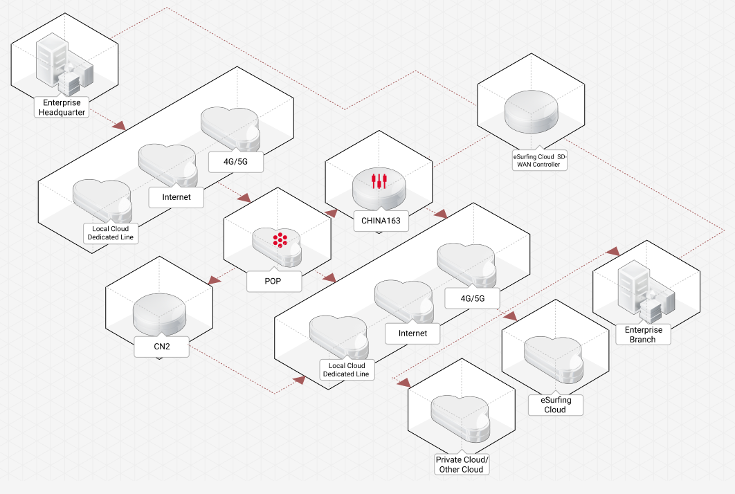 - It’s applicable to users in financial, insurance, high-tech, medical and other industries that have branches and already have dedicated lines (or considering dedicated lines) for interconnection between headquarters xand important branches. Due to the increase of business, users urgently need to solve the problem of insufficient bandwidth of dedicated lines, and at the same time, important services require a reliable link in addition to the high-performance link.