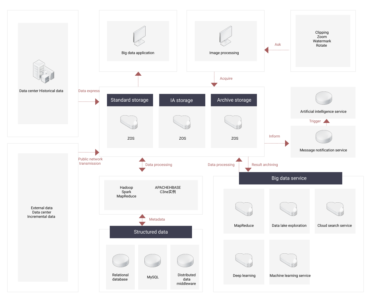 - For example, data regarding urban traffic, household surveillance, and video websites is stored in the cloud-based ZOS and managed throughout the life cycle of the data so that users can view video and image data anytime and anywhere.