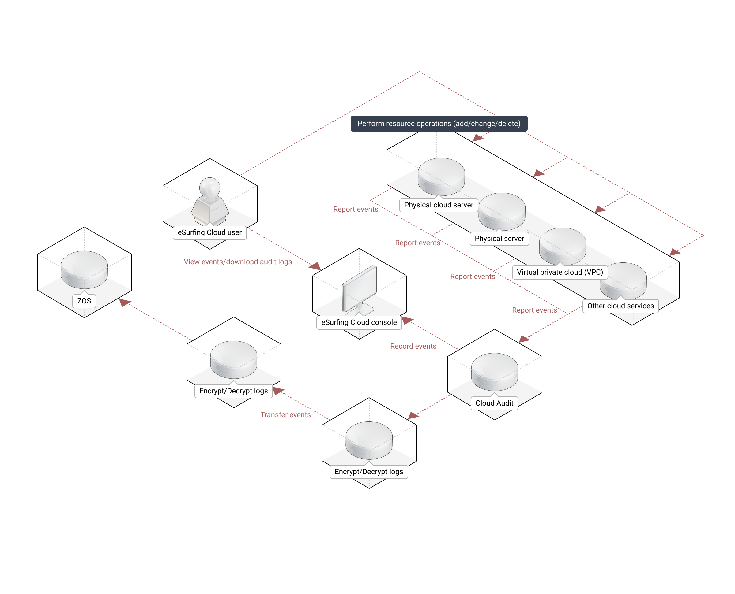 - Full Coverage: Cloud Audit records the addition, modification and deletion operations on a dozen of eSurfing Cloud products.