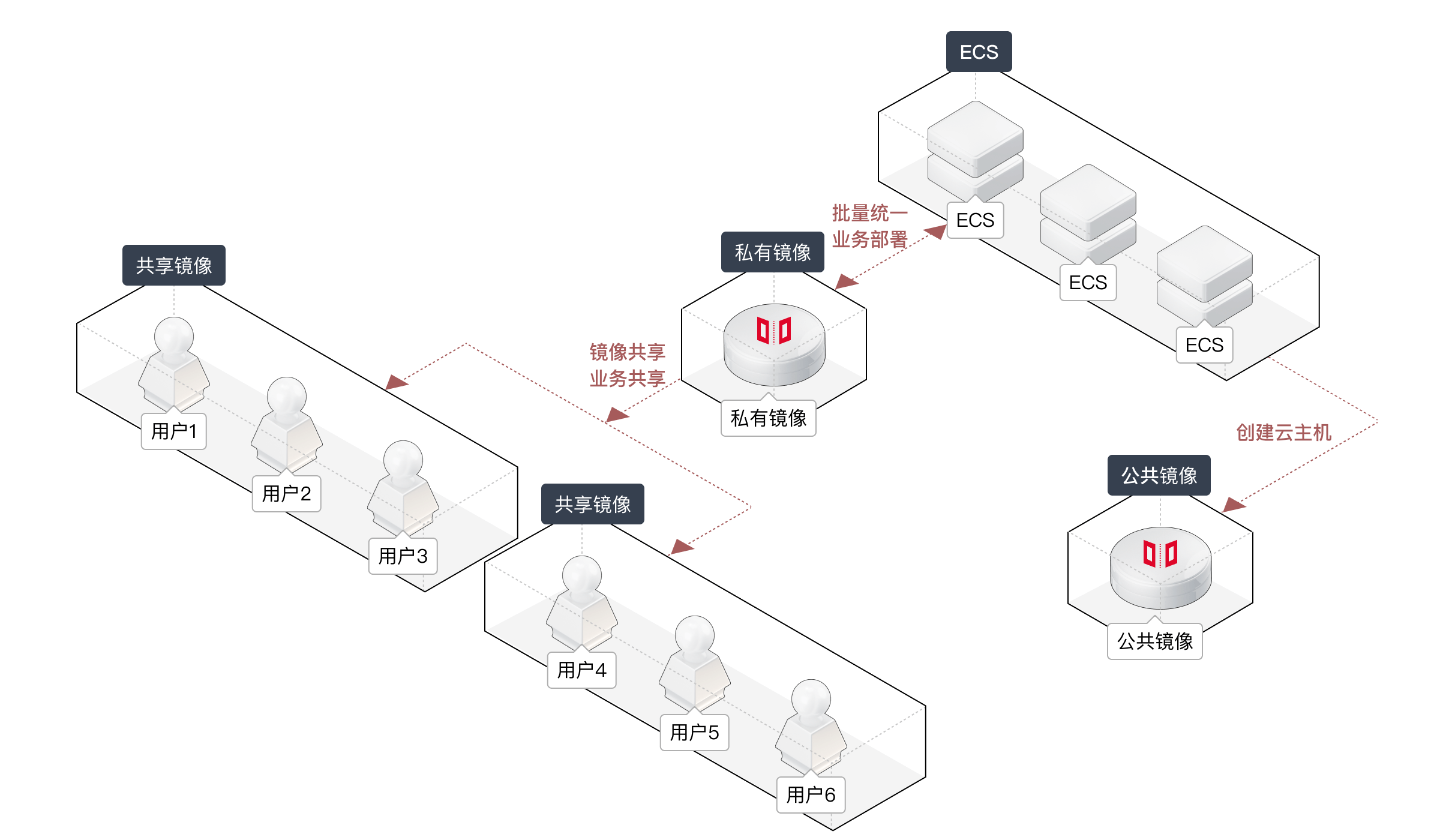 用户可以使用天翼云提供的标准公共镜像,也可以自己创建特殊需求的私有镜像,或者通过其他账号分享镜像的方式供用户使用