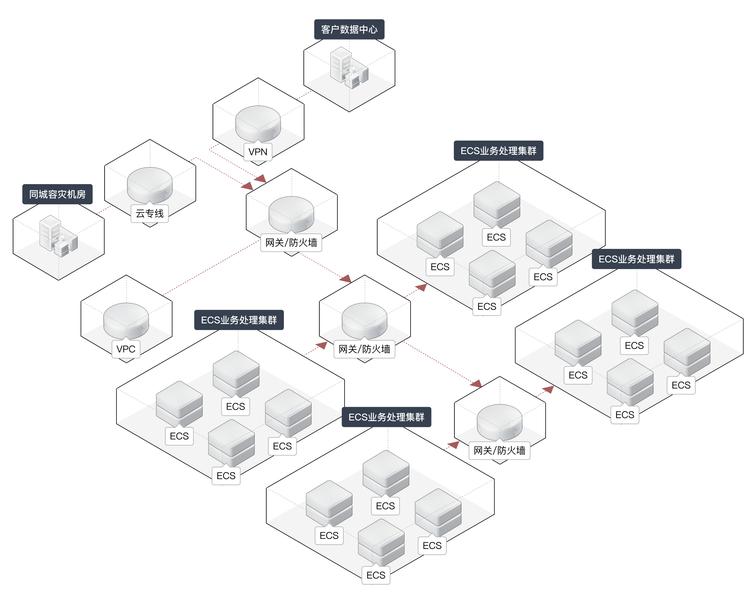支持云专线/VPN 高速网络打通云上和企业数据中心,用户业务和数据可以云上、线下灵活部署并迁移
