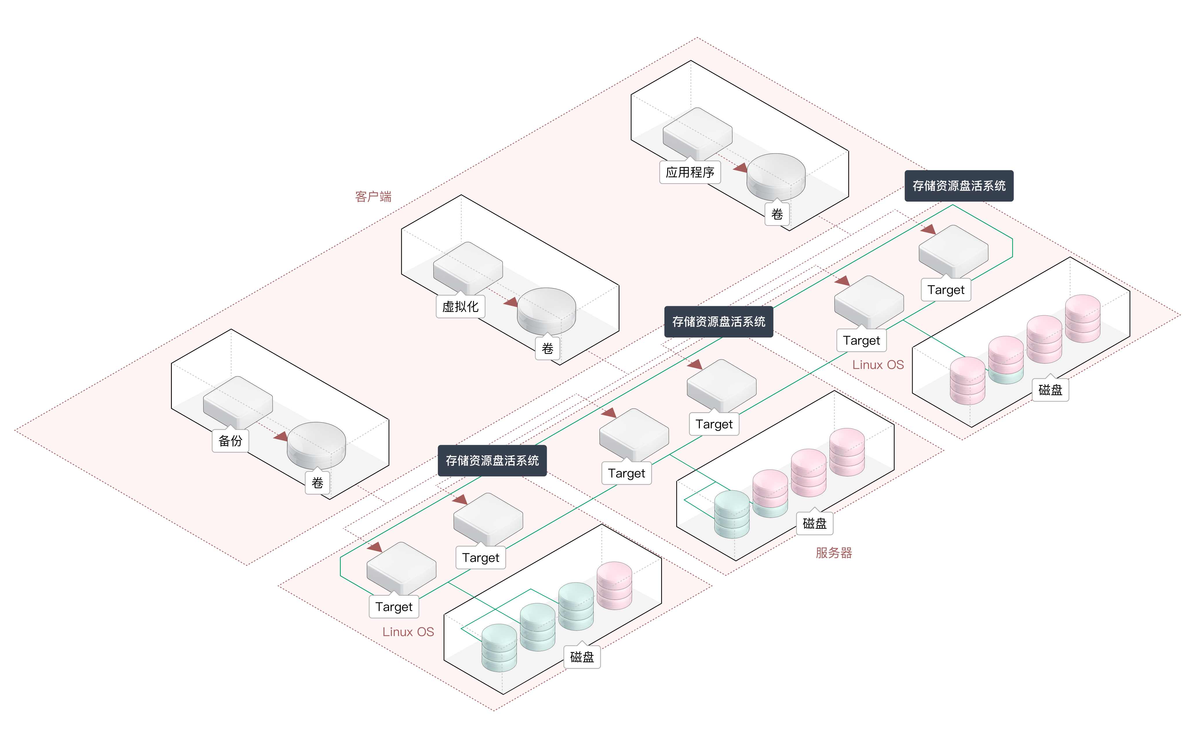 - 盘活应用节点的存储资源,转化形成高可用的虚拟盘,进而提高应用的可用性