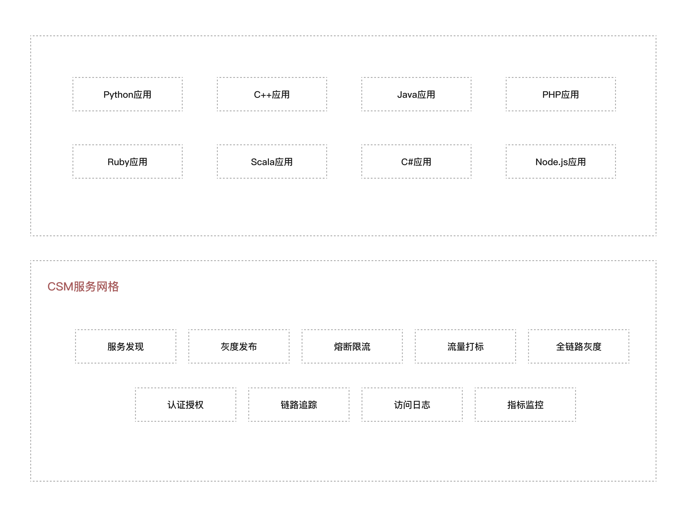 - 服务网格采用无侵入式的Sidecar模式,提供了与语言无关的服务治理能力,无需修改业务代码即可实现对多语言应用的灰度发布、熔断限流、标签路由、全链路灰度等治理能力。