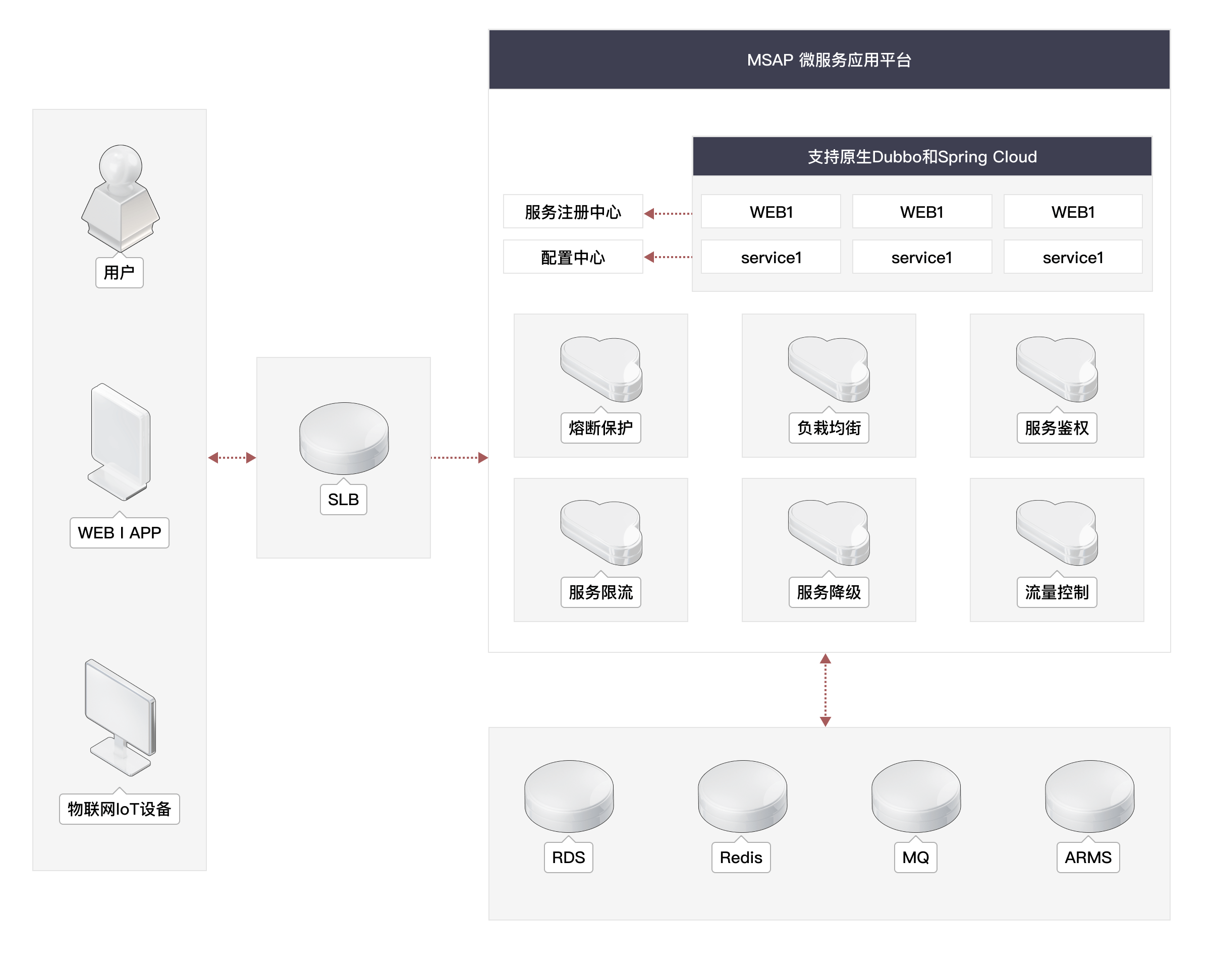 兼容SpringCloud、Dubbo等主流微服务框架,无侵入接入